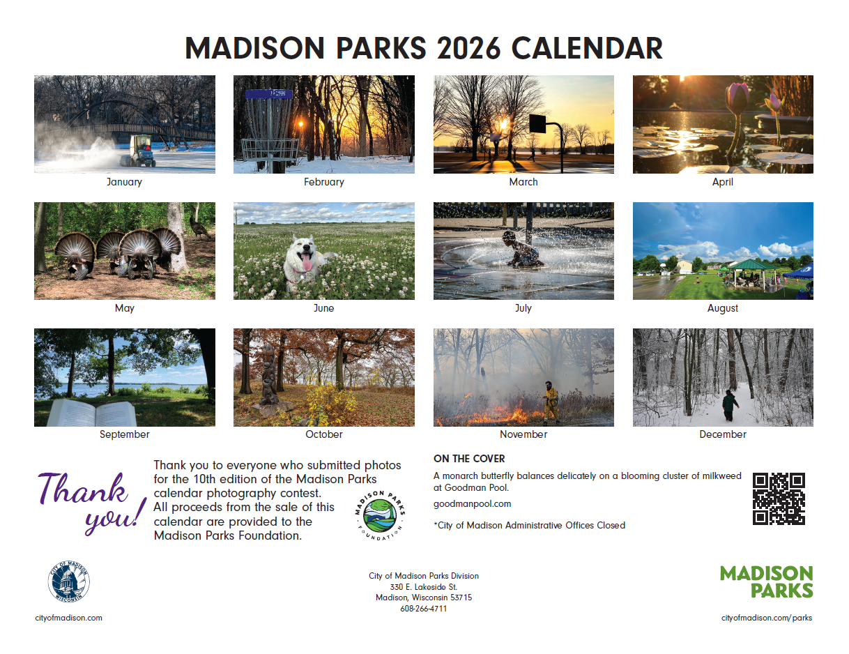 Submit your high-resolution photo(s) taken in or of a Madison park by Monday, September 7, 2026 for consideration in the 2027 Madison Parks calendar.