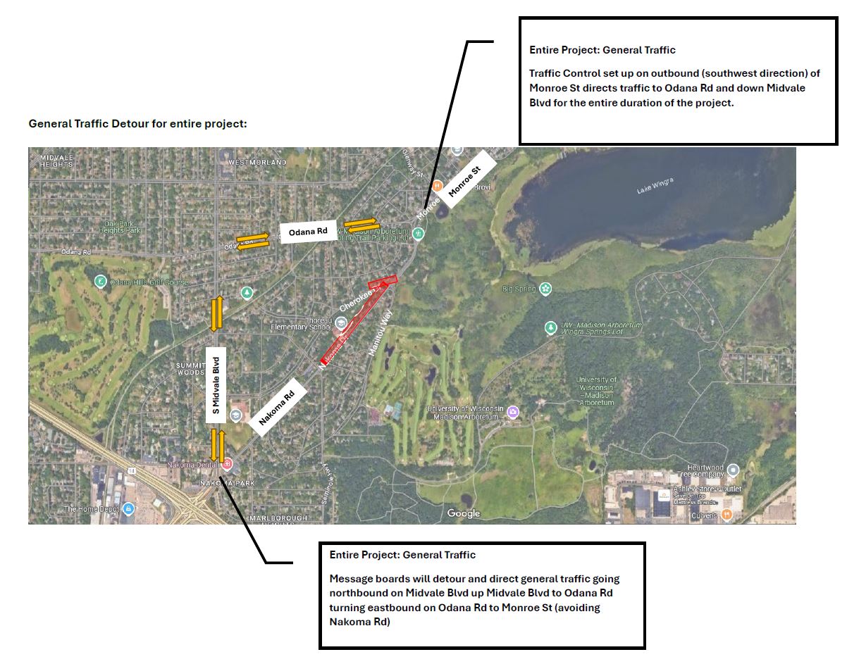 This project will be constructed in conjunction with a storm box culvert replacement project in the area of the intersection of Nakoma Road and Cherokee Drive, which was mentioned briefly at the PIM on 12/2/24. At the upcoming Board of Public Works meeting on 1/29/25 there will be a more thorough presentation on the implications of that culvert project and the rationale behind it. The link to the meeting is near the bottom of this page.